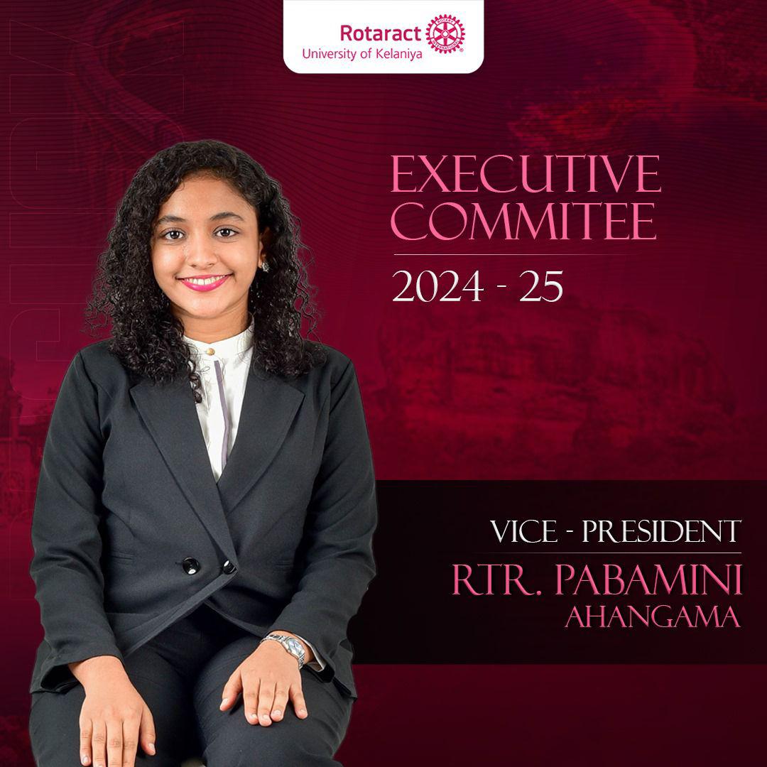 Introducing Rtr. Pabamini Ahangama, Vice President of the Rotaract Club of University of Kelaniya. 👩🏻🦱💗