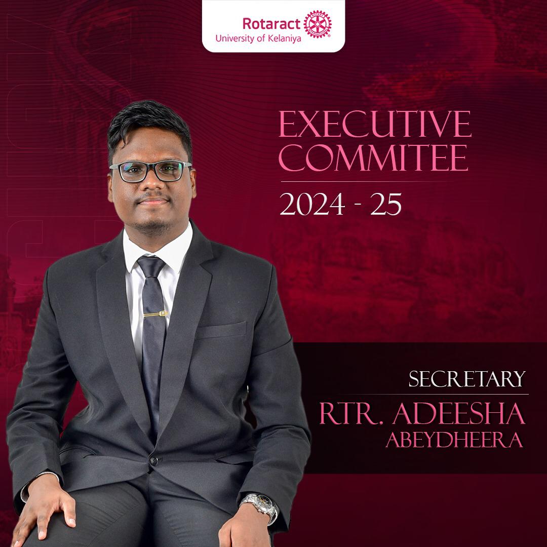 Introducing the Secretary of the Rotaract Club of University of Kelaniya, Rtr. Adeesha Abeydheera. 🤓